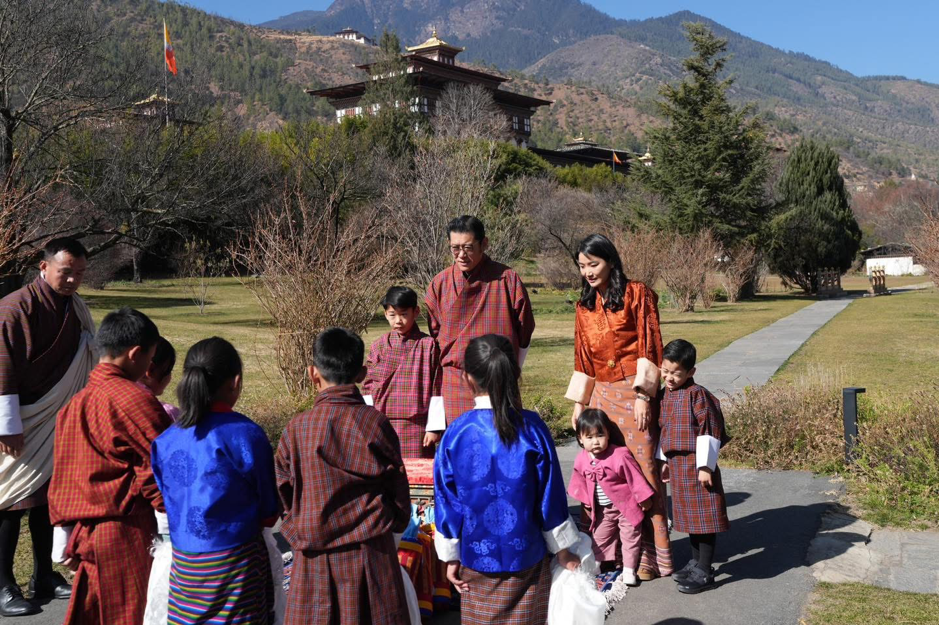 His Majesty The King, Her Majesty The Gyaltsuen, His Royal Highness Gyalsey Jigme Namgyel Wangchuck, His Royal Highness Gyalsey Ugyen Wangchuck, and Her Royal Highness Gyalsem Sonam Yangden Wangchuck, at Changyul Park, Thimphu.